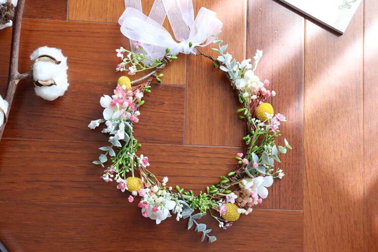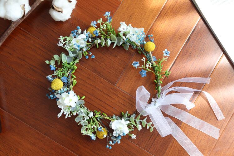 色:青い花輪,ホワイトピンクの花輪