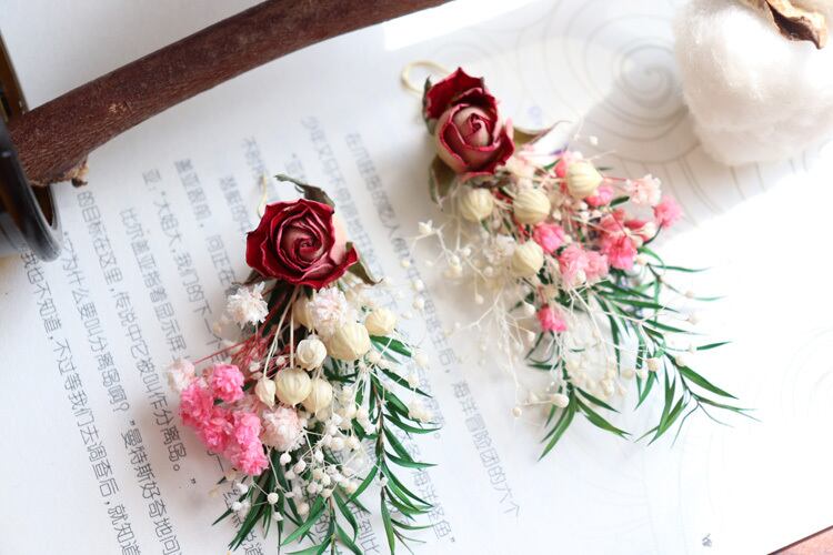 色:3つの乾燥したバラのヘアピン,ドライフラワーローズ925トレメラフック,ドライフラワーローズイヤークリップ,3つのバラのヘアピン+バラの925白い菌のフック,3つのバラのヘアピン+バラの耳クリップ