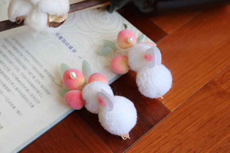 色:単一のバニー,小さなウサギの桃のヘアピン,バニーピーチヘアピンのペア2個