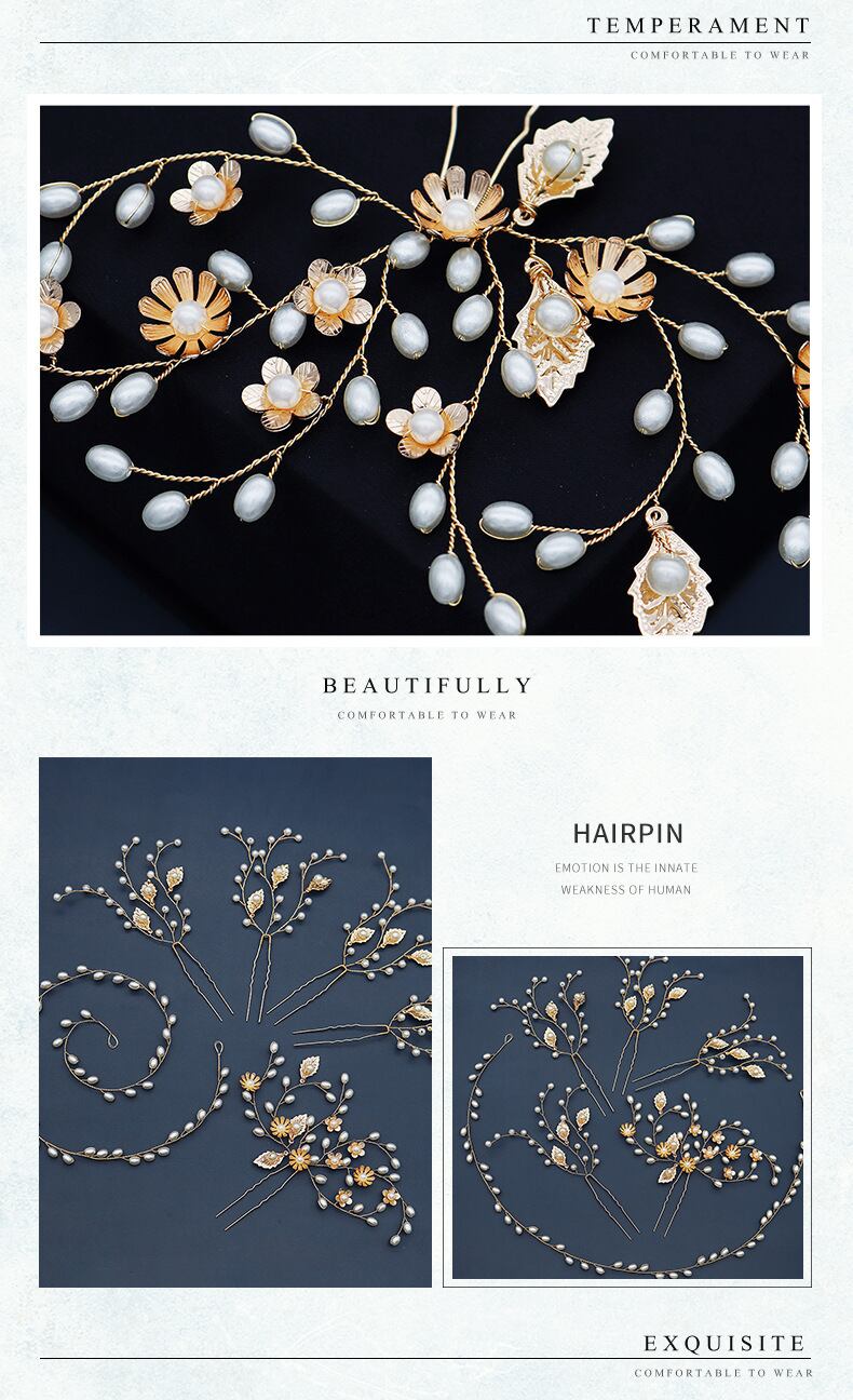 色:ゴールデン(5つのヘアピンと1つのヘッドバンド)HS-J6352